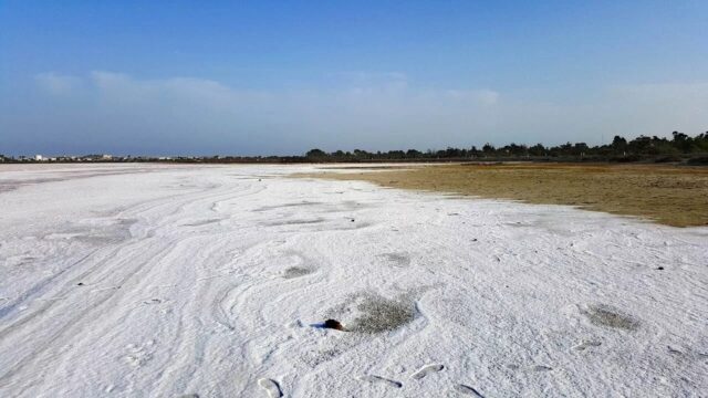 Salt-resistant plants, such as sarsaparilla, sea lavender, saltwort, and reeds, grow around the pond. They play a key role in preserving the ecosystem, preventing soil erosion and maintaining moisture balance.