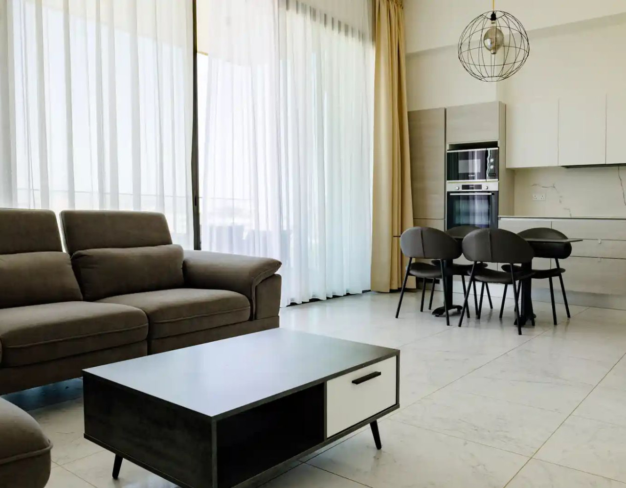 - Open plan living area and kitchen