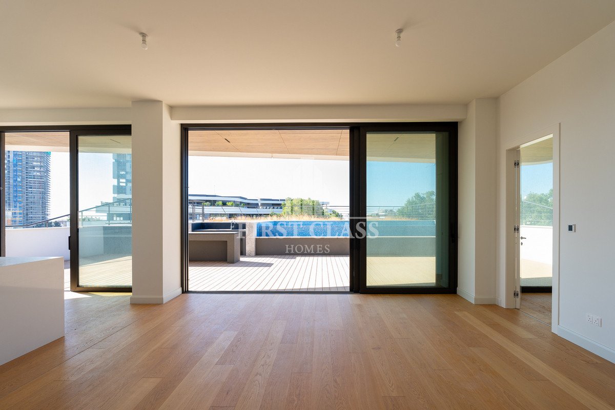 The apartment is flooded with natural light, bringing life to all its gorgeous features. All bedrooms benefit from fitted wardrobes and ensuite bathrooms, and the master bedroom has exclusive access to the outdoor space.