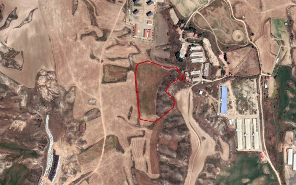 A field in Pano Deftera, Nicosia. The field has 17,206sqm with an irregular shape and and is landlocked. The immediate area comprises of undeveloped parcels of land as well as some animal husbandry facilities. It falls within animal husbandry planning zone Δ1 with 30% building density.