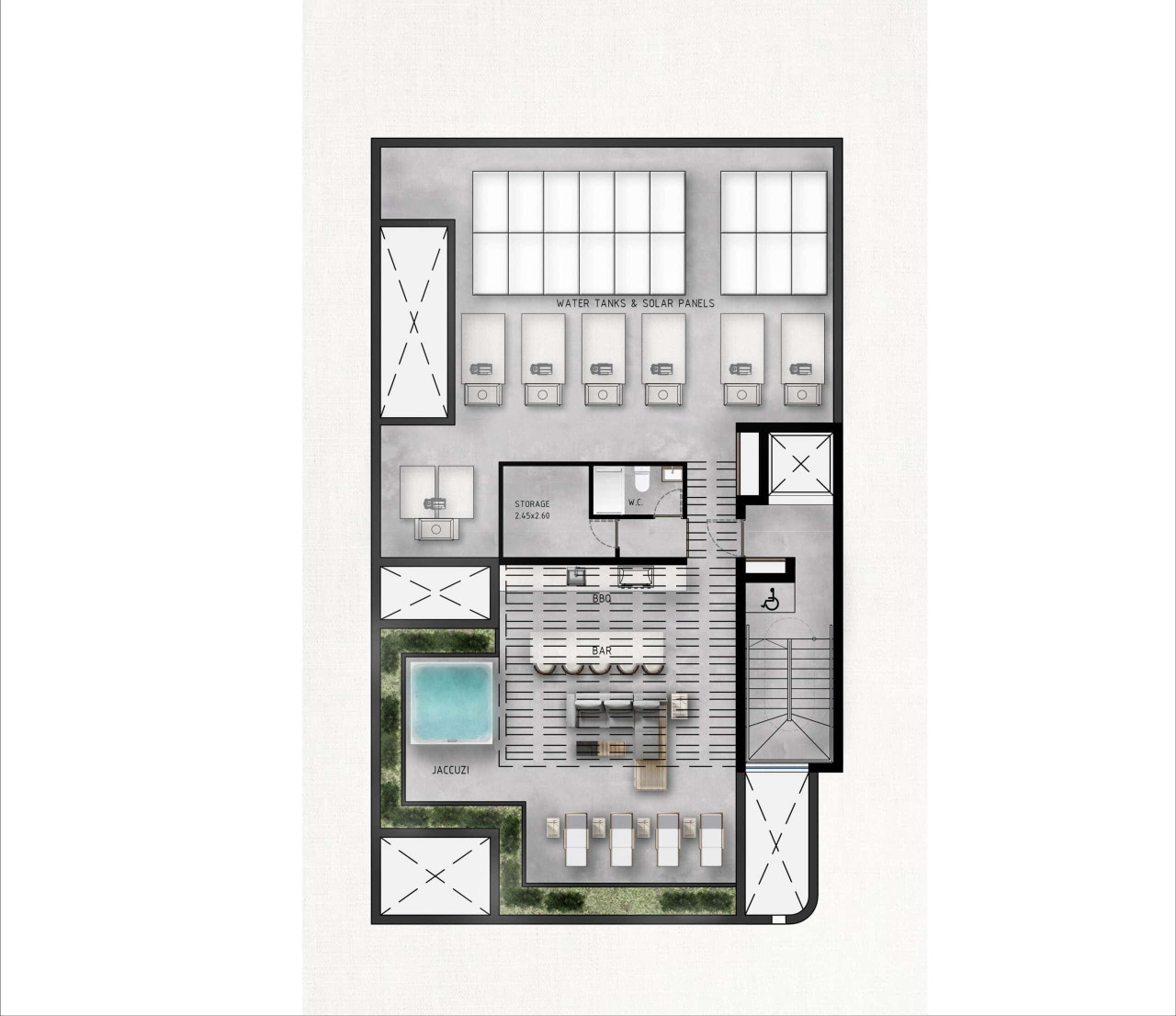 - BBQ area, and a serene yoga zone