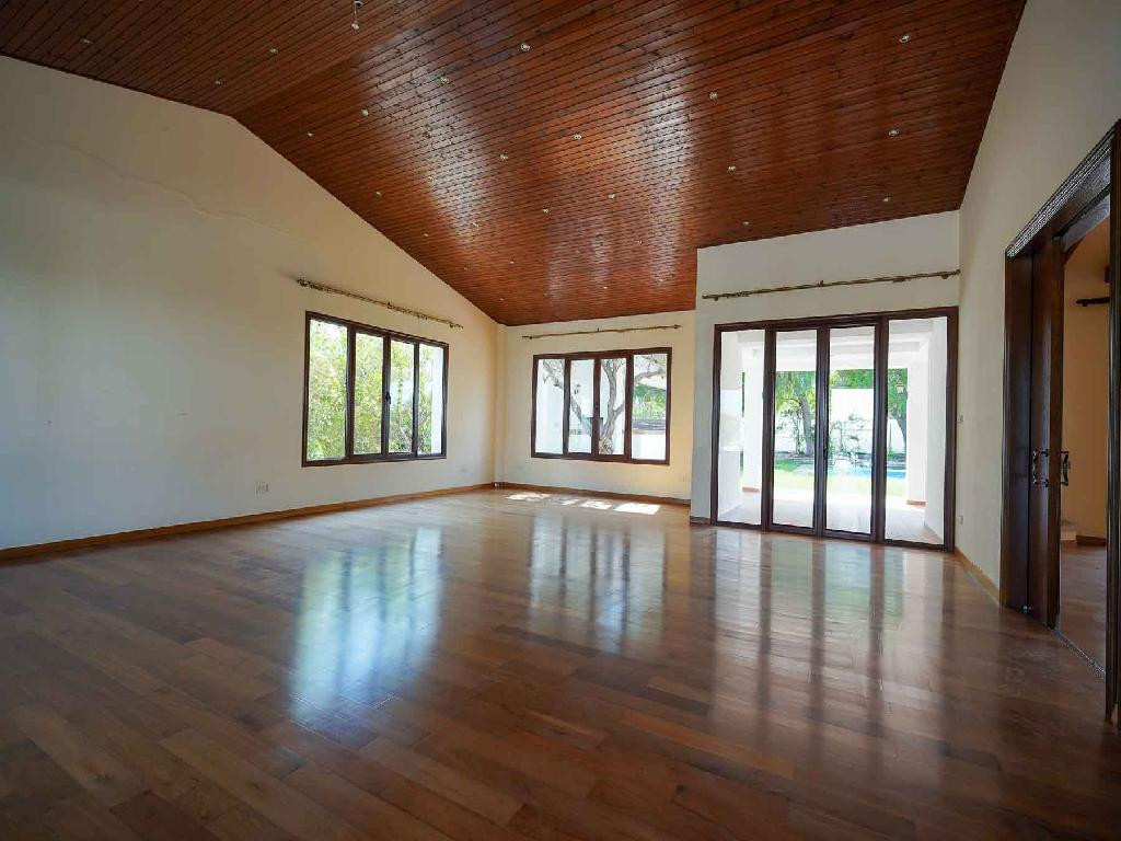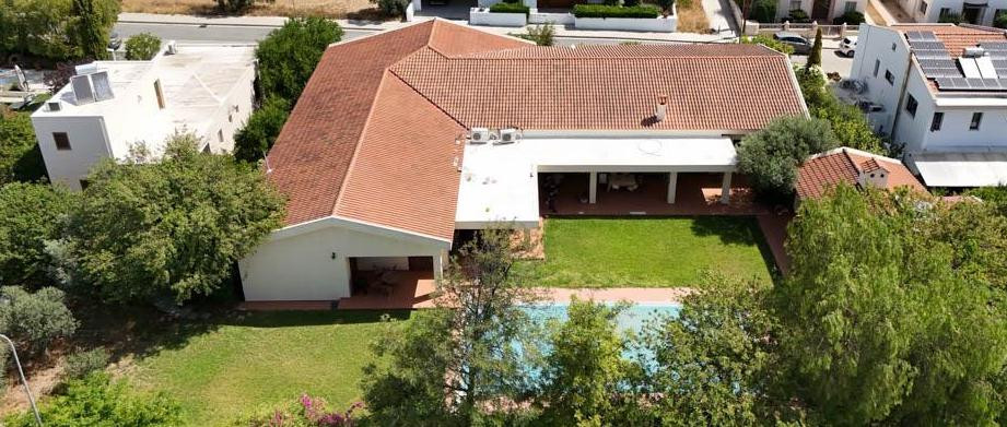 A ground floor house with private pool and auxiliary house in a popular and an attractive location in Latsia in Nicosia. The ground floor house was constructed around the year 2005, it also has basement and an auxiliary building. The house it consists of a kitchen, a dining/living area, an office, guest toilet, laundry room, 4 en suite bedrooms, covered parking and covered verandas. Externally there is a swimming pool, toilet with shower, beautifully landscaped yard with a BBQ area. Furthermore there is a basement of 37 sq.m. which is used as a stogare and boiler room. The area of the internal spaces of the ground floor house is 420 sq.m. plus covered verandas of 105 sq.m. plus covered parking of 40 sq.m.