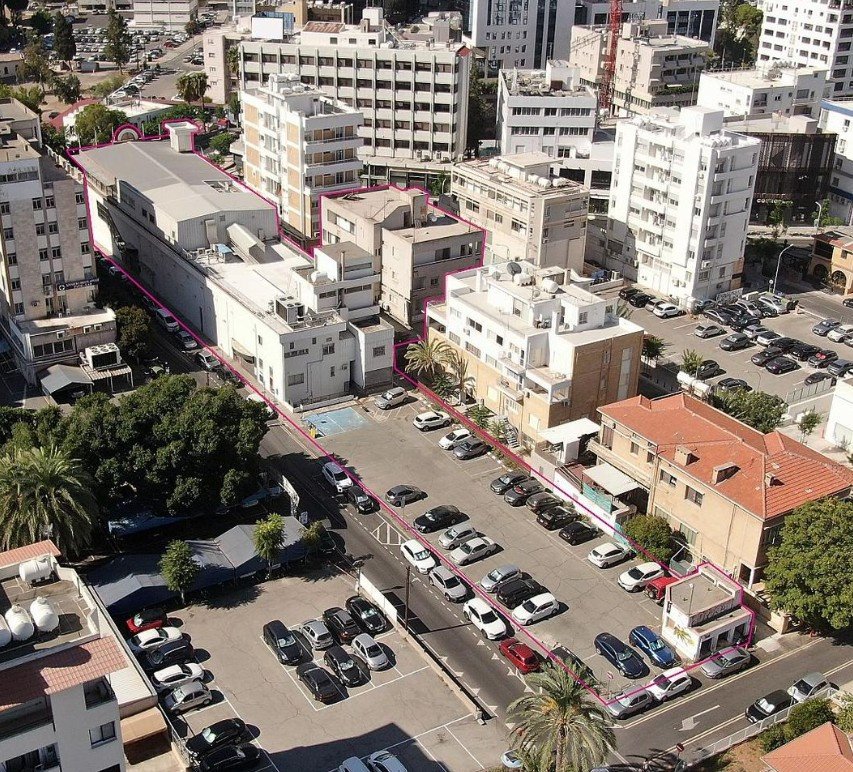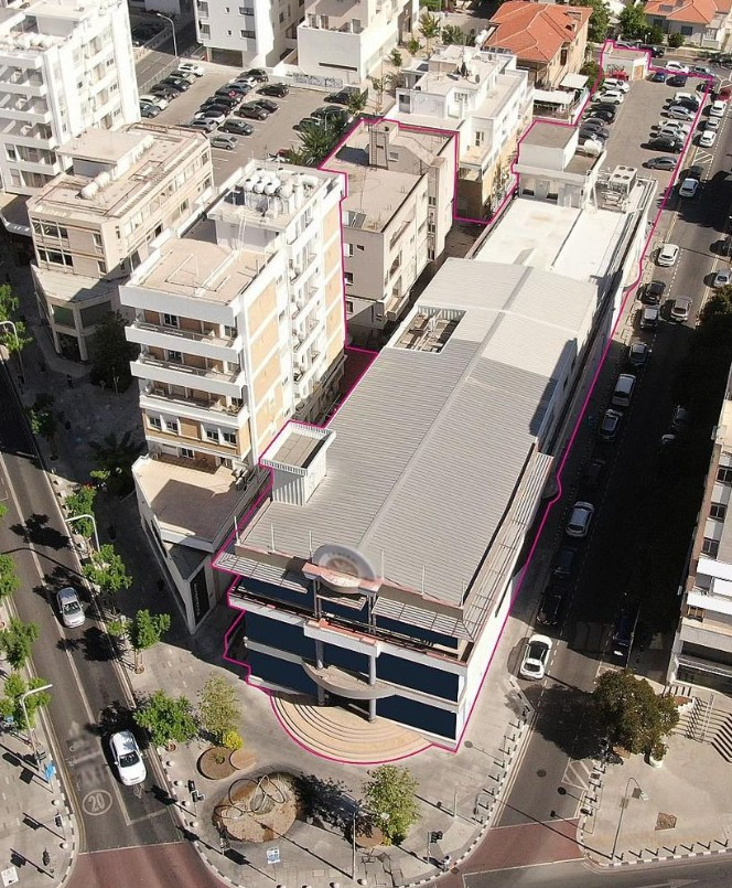 A three-storey commercial building with parking area for sale in Trypiotis, Nicosia.