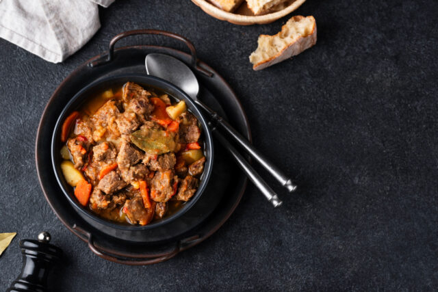 Authentic stifado is cooked slowly and for a long time. This dish can’t be rushed: the longer the meat sits in the sauce, the tenderer it will become and the richer the flavor.