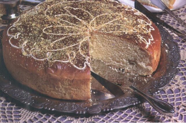Modern Cypriot families sometimes bake two Vasilopitas—one with yeast dough, the other a shortbread cake with nuts and spices. Dozens of variations are sold in city pastry shops: with chocolate, fruit, dried fruit, pistachios, and even caramel glaze.
