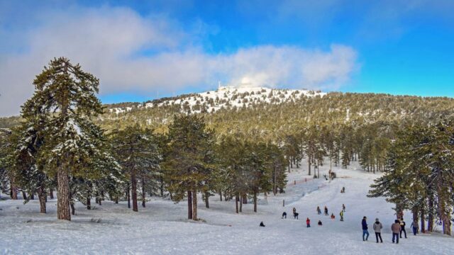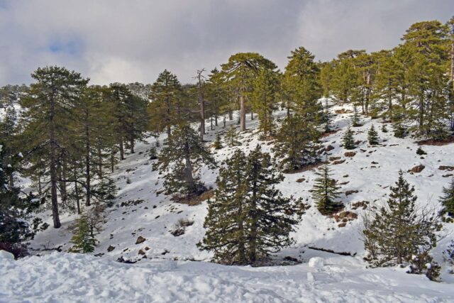The central Mesaoria Plain remains one of the warmest parts of the island. In Nicosia, temperatures range from 10 to 22°C, with little precipitation—around 25 mm per month. On average, there are up to seven hours of sunshine per day. In the town of Prodromos, located at the foot of Mount Olympus at an altitude of over 1,300 m, temperatures are noticeably cooler: 6 to 13°C. Precipitation, in the form of short showers, reaches 100 mm per week.
